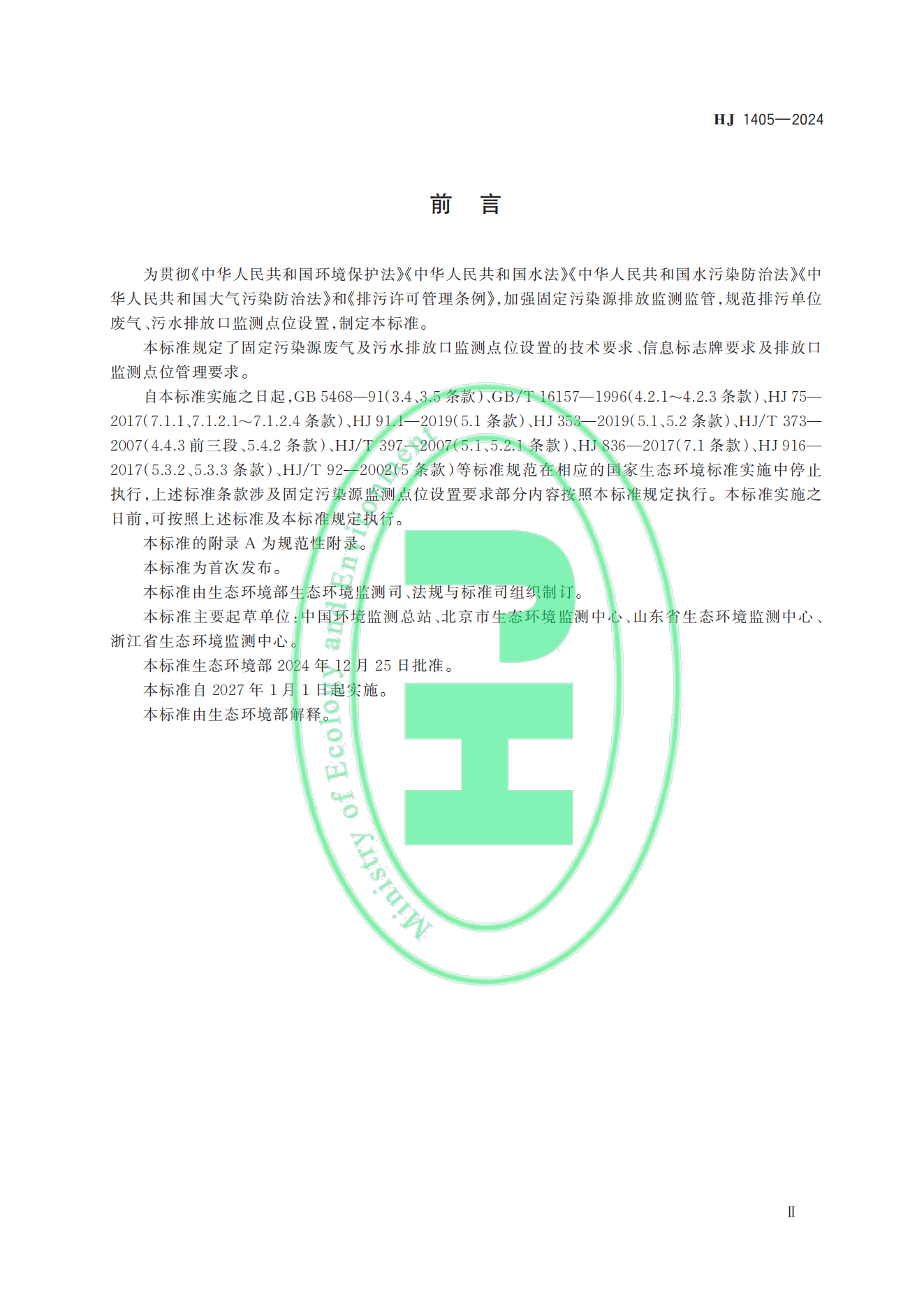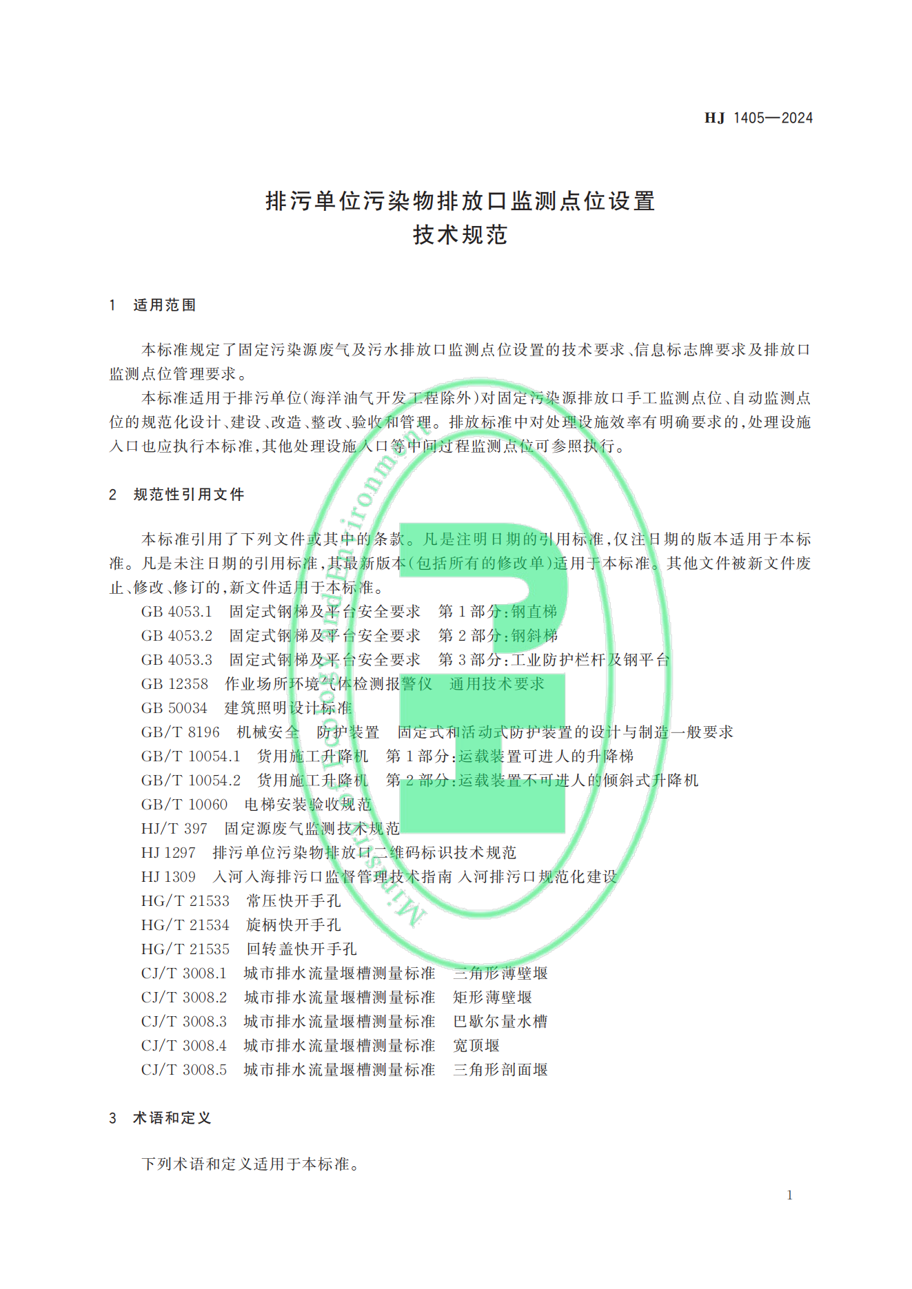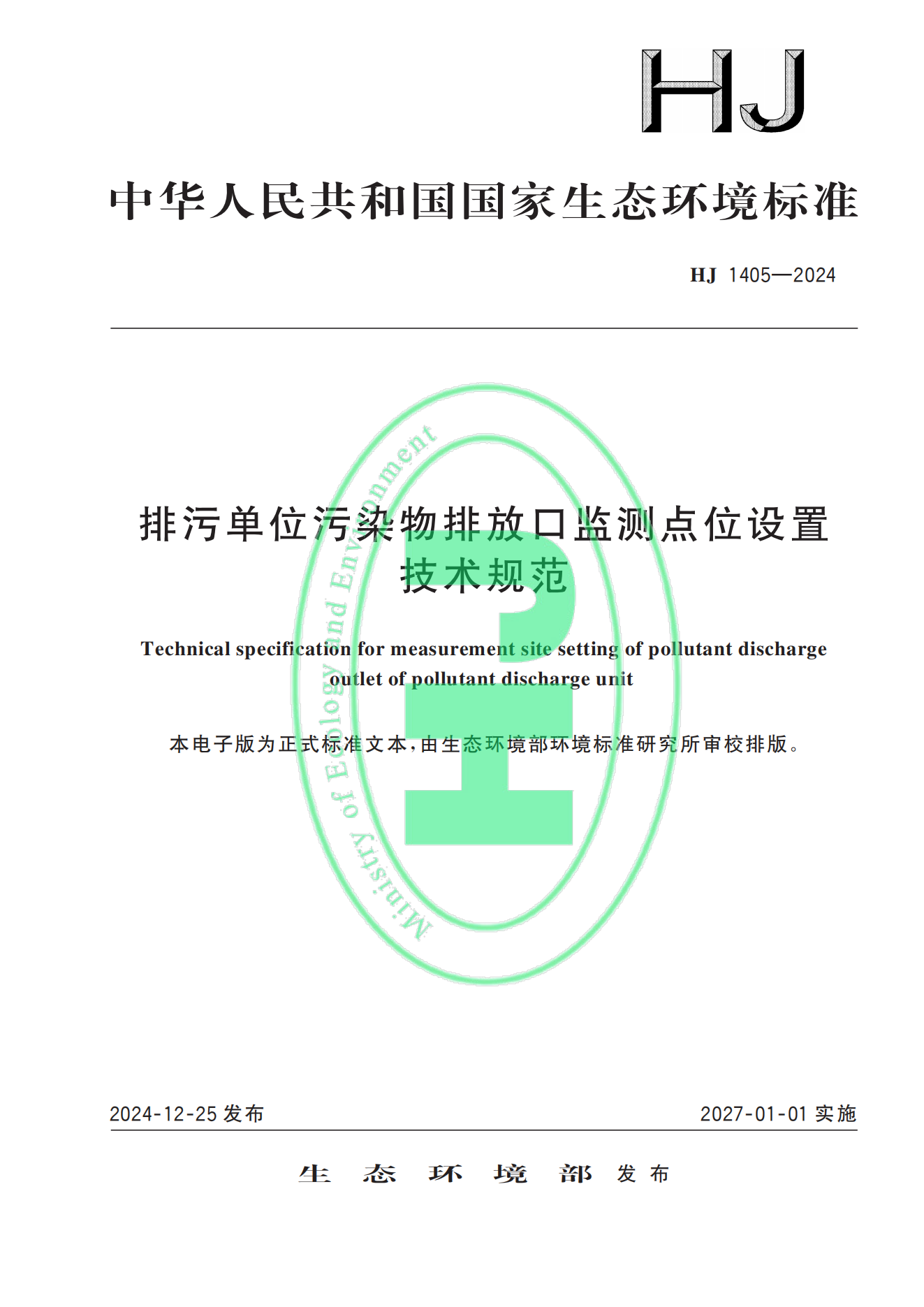 环境标准 ▏HJ1405—2024排污单位污染物排放口监测点位设置技术规范